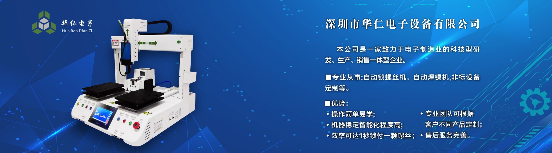 深圳市華仁電子設備有限公司是一家致力于電子制造業(yè)周邊設備的科技型研發(fā)、生產(chǎn)、銷售一體的企業(yè),專業(yè)從事:自動鎖螺絲機;自動焊錫機;非標設備定制機等,公司長期以來在行業(yè)中積累了豐富的經(jīng)驗,擁有專業(yè)的研發(fā)、技術、銷售支持工程團隊、各高級技術人才為客戶提供優(yōu)質(zhì)產(chǎn)品和服務,同時不斷吸取國內(nèi)外先進技術,更準確及時地為客戶提供優(yōu)質(zhì),性價比高的產(chǎn)品、公司以專業(yè)的售前、售中、售后服務贏得了客戶的信賴和好評,為客戶提供先進自動化設備一體式解決方案、